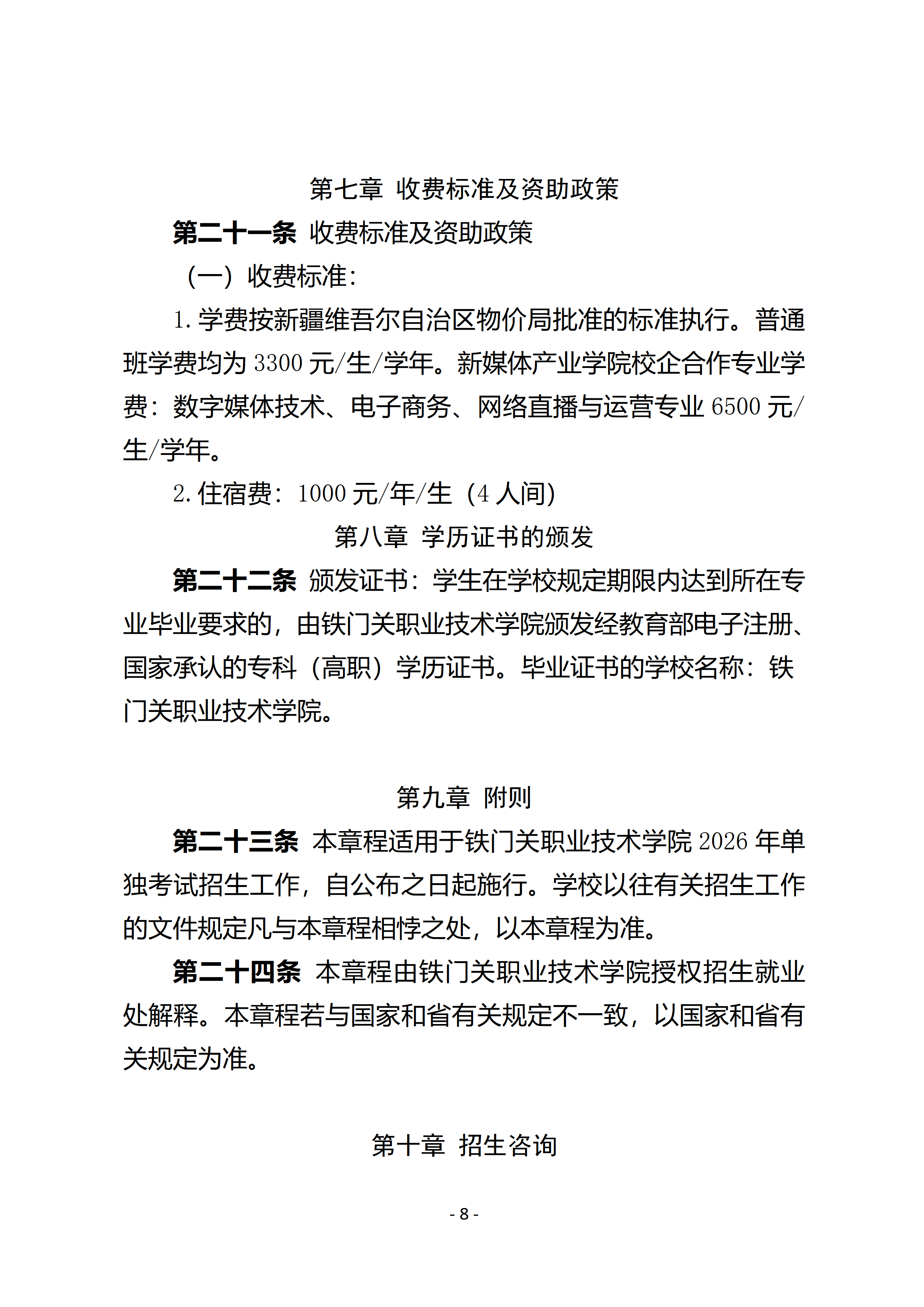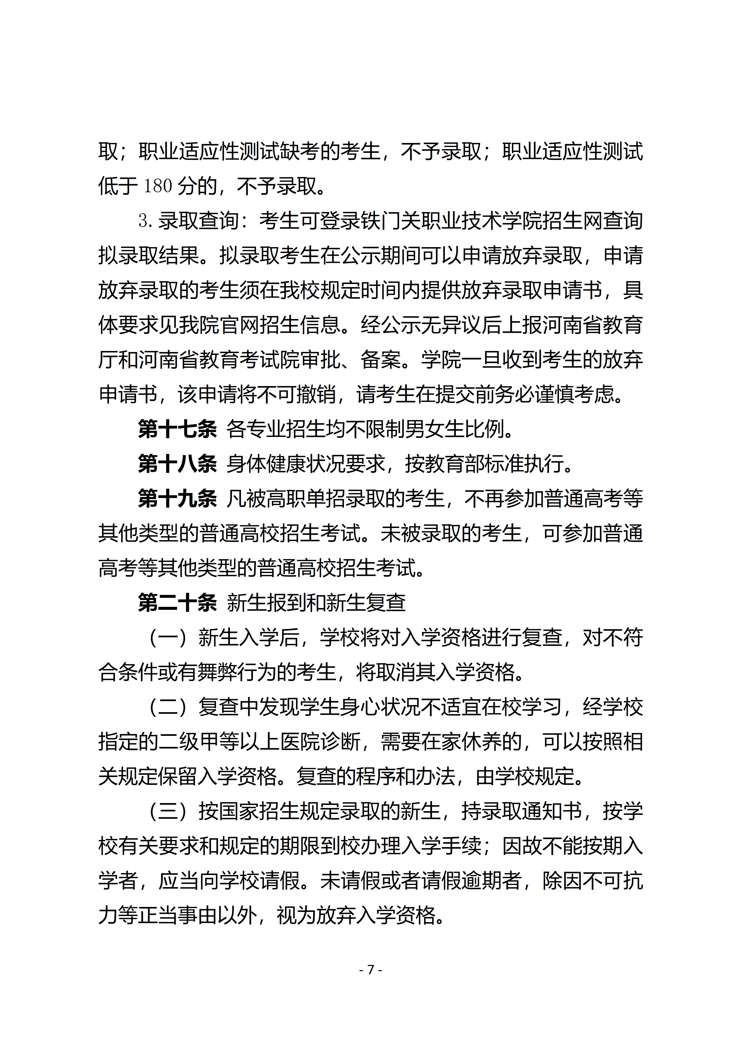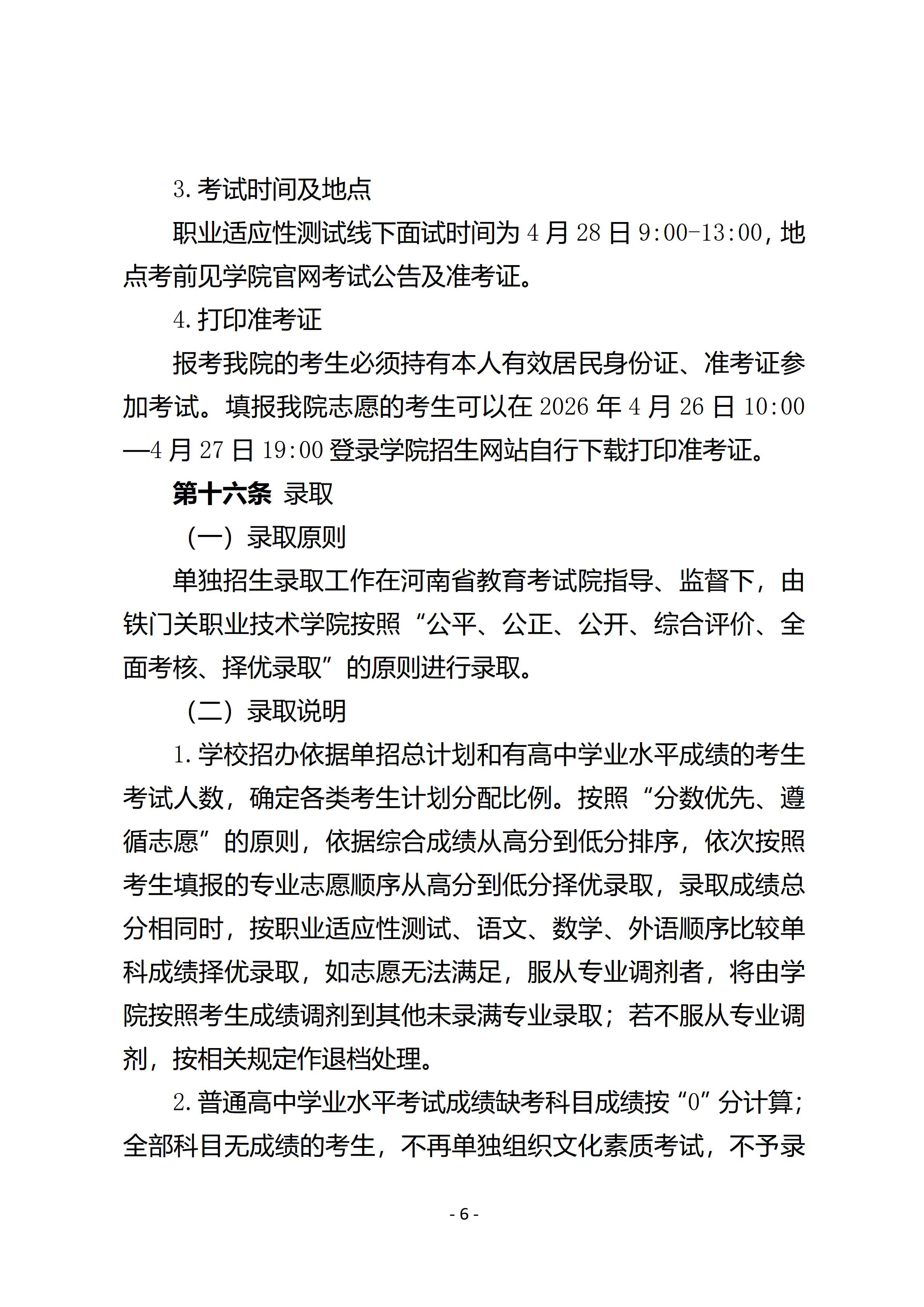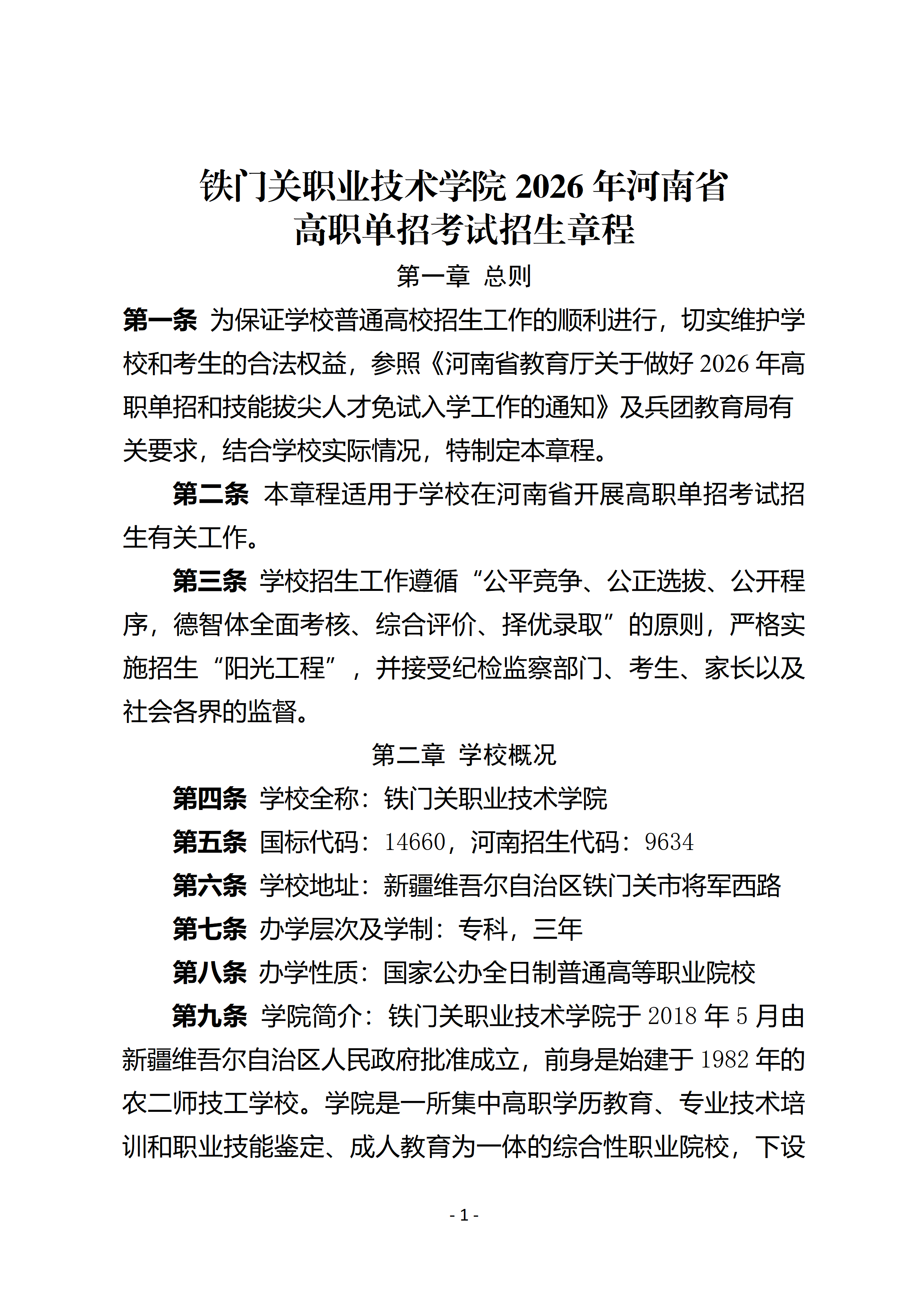 铁门关职业技术学院2026年河南省高职单招考试招生章程